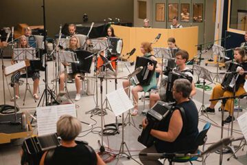“My Switzerland” von Hans Günther Kölz Hans Günther Kölz hat das Akkordeonorchester eingeladen, für ihn das neu komponierte Stück “My Switzerland” in den Bauer Tonstudios in Ludwigsburg aufzunehmen. Am 15. Juli 2023 war es soweit: weiter