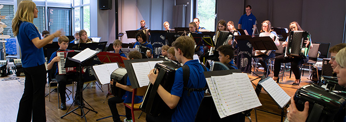 Sobald Kinder die grundlegenden Spieltechniken auf dem Akkordeon beherrschen, können sie im Schülerorchester mitspielen.